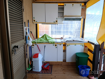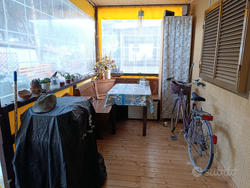 Casetta di 36mqcomposta da zona notte matrimoniale e camerina piccolo bagnetto con porta potty zona giorno con divano letto due posti frigo e TV e armadietti vari porta oggetti veranda esterna chiusa con telo a finestre il campeggio offre alimentari ristorante piscina gratuita per gli ospiti giochi per bambini oltre a darsena per barche con scivolo in acqua gratuito per gli ospiti prezzo della casetta 8000 trattabili dopo visione