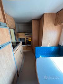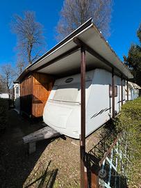 Vendiamo la nostra Roulotte e casetta in Legno con veranda. Situata in una posizione tranquilla nella zona alta del campeggio ma comunque a pochi passi da tutti i servizi, come ristorante/bar e piscina. Caratteristiche Casetta: Soggiorno con tavolo e divanetti rifoderati a nuovo più materasso matrimoniale nuovo, incluso di cucina completa di frigorifero utilizzata pochissimo. Caratteristiche Roulotte: 5 posti letto, bagno interno , ottima manutenzione. La roulotte come visibile dalle foto è praticamente nuova tutta rifinita in legno. È il modello Caravelair Antares Luxe 486 Primavera, completa di libretto. Solo la roulotte ha un valore di circa 12.000. Esterno: Veranda/dehor pavimentato, completo di tavolo, sedie e dondolo. La veranda è nuova , è stata realizzata ad Agosto 2025, completa di finestre apribili e zanzariera. Sono state riverniciate tutte le parti esterne in legno. Sono presenti anche due ripostigli esterni uno completo di armadio ed uno dove sono presenti le bombole del gas. Pronta per essere abitata, non necessita di lavori. La casetta è stata acquistata nel 2025 rimessa a nuovo e purtroppo utilizzata solo per due settimane di agosto e due weekend di luglio. Solo di lavori effettuati abbiamo speso €5.000, senza contare il tempo impiegato.. Vendiamo a euro 12.000 Resto a disposizione per qualsiasi altra informazione. Grazie Diego