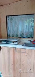 Casetta legno, roulotte e veranda