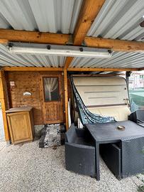 Vendo casetta prefabbricata in legno e muratura leggera, + roulotte composta da zona giorno, zona notte con 5 posti letto e veranda coperta.