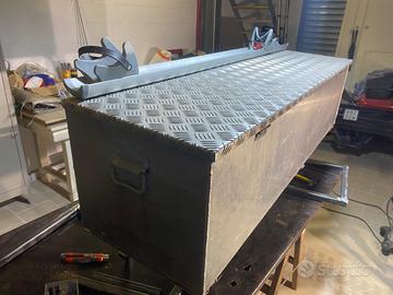 Vendo a malincuore cassone baule mandorlato in alluminio utilizzato sul mio van. Il cassone originale è stato modificato per essere trasportato sul portamoto Edicar.