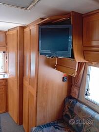 Usato benissimo e sempre tenuto in garage quando non usato, con portabici/moto omologato, scala per il tetto con barre portatutto e cassa per oggetti, televisione, barometro, tendalino esterno, doccia esterna.