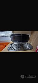Cellula abitativa OVERCAR tenuta molto bene. In vetroresina, monoscocca, dotata di tutti gli accessori necessari: bagno lavabo doccia, boiler truma bio-gas, v-trifrigo 75 lt compressore 12 volt, serbatoio acqua chiara 100 lt, serbatoio acque grigie 75 lt, 2 batterie 100 ah, finestre con oscuranti e zanzariere, riscaldamento webasto airtop 2000 D.