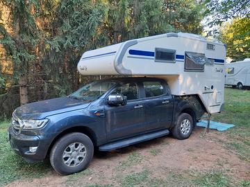 Doppia finestra in mansarda, due in dinette, una in bagno, tutte apribili con zanzariera, un oblò centrale, bombola gas da 5Kg, gradino di accesso estraibile, porta d'ingresso in vetroresina con serratura antiscasso, scaletta posteriore, bagagliera con bauliera. Possibilità di abbinamento con Pick-up Ford Ranger doppia cabina XLT 2.0 TDC 170CV immatricolazione 12/2019 colore sea grey 47.000 Km