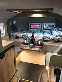Modello: GLADIATOR S Posti letto: 2/3/5 Lunghezza: 3130 Altezza: 1865 larghezza: 2210 Modello: GLADIATOR EU Colori: IN FIBRA (bianco,blu,giallo) POLIUREA (nero,grigio,verde,deserto) Compatibile: Vedi compatibilità DI SERIE Struttura monoscocca non infiammabile e antiruggine Isolamento termico in poliuretano da 20 mm Interni in Luxury Design Finestre nella zona cucina e letto Angolo cottura 1 fuoco con lavandino Posti letto: 2/3 (con tenda da tetto 5) Mobile contenitore cucina Letto King Size: 200 x 170 (3 posti) Acqua chiare: 58 litri Acque grigie: 23 litri