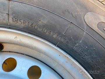 Cerchi e pneumatici per roulotte hobby o compatibili, misura 185R14C . Originali, come nuovi, smontati da caravan Hobby, immatricolata nuova, ad agosto 2022. Pneumatici ad alta portata, originali, marca Kargomax G. Cerchi con attacco a 5 fori, 5x112 mm. Questo standard è ampiamente utilizzato anche da marche come Tabbert, Knaus, Bürstner e Adria. Le gomme hanno percorso pochissimi km e ben conservate; caravan sollevata durante l’inutilizzo. Sostituiti per cerchi di misura maggiore (per maggiore altezza da terra). A parte, copricerchi originali, come da foto.