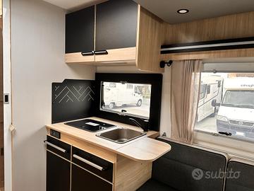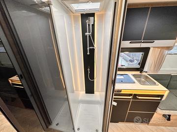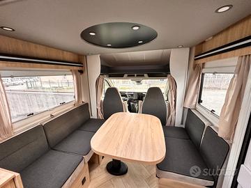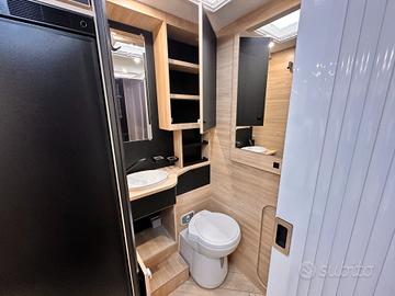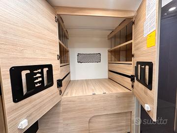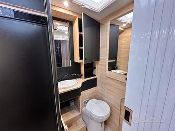 PREZZO COMPRESO DI IMMATRICOLAZIONE E ACCESSORI PRESENTI Il 250 è uno dei layout più intelligenti della gamma 2026: compatto, spazioso, con una zona giorno enorme e un bagno in coda molto comodo. Zona anteriore - Living * Dinette face-to-face molto ampia * Sedili cabina girevoli * Tavolo centrale regolabile * Grande luminosità grazie al tetto panoramico È una delle zone giorno più grandi della categoria sotto i 6,40 m. Letto basculante * Letto matrimoniale basculante sopra la dinette * Rete a doghe e materasso ergonomico (dato confermato dai rivenditori) * Scende elettricamente o manualmente a seconda della configurazione Permette di avere un letto sempre pronto senza rinunciare allo spazio giorno. Zona centrale - Cucina + armadio * Cucina compatta sul lato destro * Piano cottura + lavello * Pensili capienti * Frigo a compressore * Armadio guardaroba verticale vicino al bagno La cucina è ben organizzata, perfetta per un mezzo compatto. Zona posteriore - Bagno + garage Questa è la caratteristica distintiva del 250: * Grande bagno in coda * WC * Lavabo * Box doccia separato (confermato dai rivenditori) * Cabina armadio integrata * Garage accessibile dall'esterno (dato tecnico) Il bagno posteriore è enorme per un camper di 6,39 m, ed è uno dei motivi per cui questa pianta è così apprezzata. Sintesi della piantina (da davanti verso dietro) Dinette face-to-face Letto basculante Cucina + armadio Grande bagno in coda con doccia separata Garage Perché questa piantina piace così tanto * Zona giorno enorme per un mezzo sotto i 6,40 m * Letto basculante che libera spazio * Bagno posteriore molto grande * Garage utile anche se il mezzo è compatto * Perfetto per coppie VIENI A TROVARCI CI TROVI A CAVOUR (TO) 10061 VIA PINEROLO 160 LATITUDINE: 44.797636 LONGITUDINE: 7.374561 *La dotazione tecnica e gli optional potrebbero in alcuni casi differire dall'effettivo equipaggiamento della vettura. CAVOUR CAMPER TURAGLIO declina ogni responsabili