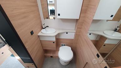 Se cerchi un semintegrale compatto ma ricco di comfort, il Challenger 260 Ultimate Edition è la scelta perfetta. Con una lunghezza di 6,99 metri, è omologato per 4 persone e offre 4 posti letto: un letto matrimoniale basculante elettricamente sopra la dinette e un altro letto matrimoniale che si ottiene trasformando la stessa dinette, per garantire comfort e praticità durante il viaggio. Sotto il cofano troviamo un motore Fiat Ducato Euro 6 da 140 cavalli con cambio automatico a 8 rapporti, che rende la guida semplice e piacevole. Il riscaldamento a gasolio è affidato al sistema Webasto, mentre l'acqua calda è fornita dal sistema Truma, assicurando comfort in ogni stagione. La zona giorno è spaziosa e accogliente: i divanetti e il tavolo pieghevole e regolabile in altezza offrono il massimo della comodità. La cucina a gas è completa di 2 fuochi, lavandino, ripiano di appoggio a scomparsa e frigorifero trivalente da 167 litri, perfetto per preparare e conservare i pasti durante i viaggi più lunghi. La zona posteriore ospita un bagno comodo e spazioso, con doccia separata e armadi di stivaggio per organizzare al meglio tutti i tuoi effetti personali. A completare il tutto, un ampio garage con secondo portellone permette di trasportare comodamente tutto il necessario per le tue avventure. Tra le dotazioni principali troviamo: Retrocamera Autoradio 2 Din con porta USB e Pack Connect con DAB/Bluetooth, schermo tattile, comandi al volante Aria condizionata in cabina Veranda da 4 metri Pannello solare da 140 watt e predisposizione pannelli solari Pack Look Fiat: leva del cambio e volante effetto pelle, bocchette d'aria cromate, cerchi in lega neri 16 pollici Pack Accessori P: tendalino esterno, zanzariera per la porta, oscuranti cabina Pack Authentique: confezione Bombay, cuscini decorativi, box Authentique Il Challenger 260 Ultimate Edition è un semi integrale progettato per chi vuole viaggiare senza compromessi, con ogni comfort a portata di ma