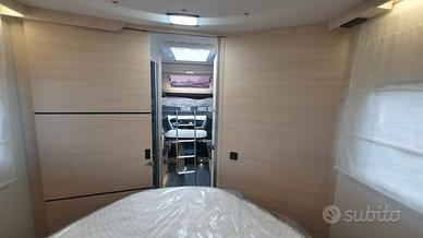 Le due zone notte: letto basculante sulla dinette e letto matrimoniale alla francese al disopra del garage, sono divise da una comoda porta scorrevole.