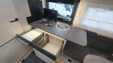 Un camper che vi fa sentire a casa, grazie alla sua ampia dinette che a seconda della necessità consente di essere definita a proprio piacimento.