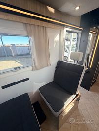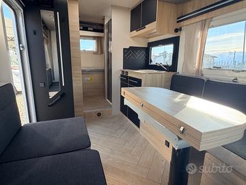 Il 380 nasce come evoluzione del celebre 260 (famoso per la maxi-dinette), ma aggiunge due cuccette posteriori trasformabili: