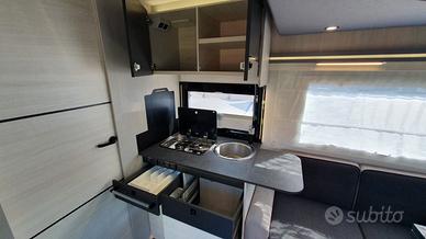 La disposizione interna è pensata per offrire spazio e funzionalità: il letto basculante sopra la dinette face to face e i letti a castello posteriori garantiscono comodi posti per dormire, mentre la dinette face to face crea una zona giorno ampia e accogliente.