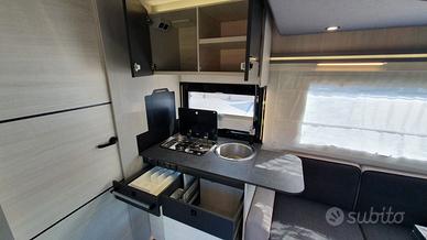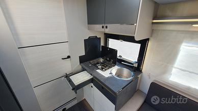Con una lunghezza di 7,19 metri, questo camper dispone di un ampio garage regolabile in altezza grazie al sistema Easy Bed, perfetto per trasportare tutto il necessario per le tue avventure. La cucina lineare è attrezzata con un frigorifero trivalente da 134 litri, ideale per lunghi viaggi.