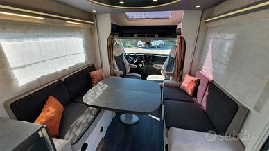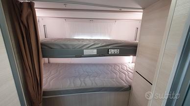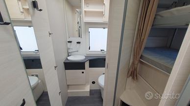 La disposizione interna è pensata per offrire spazio e funzionalità: il letto basculante sopra la dinette face to face e i letti a castello posteriori garantiscono comodi posti per dormire, mentre la dinette face to face crea una zona giorno ampia e accogliente.