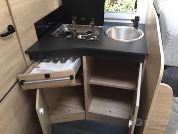 DOTAZIONI: Dotazione completa: meccanica Fiat Ducato 2.2 140 cv, aria condizionata in cabina, specchi retrovisori elettrici riscaldati, cruise control, Start&Stop, traction+ ed hill descent control, sistema multimediale DAB/Bluetooth Apple/Android con comandi al volante e retrocamera, cerchi in lega neri da 16 pollici, zanzariera porta di ingresso, luce esterna, veranda, pannello solare.
