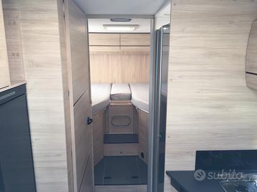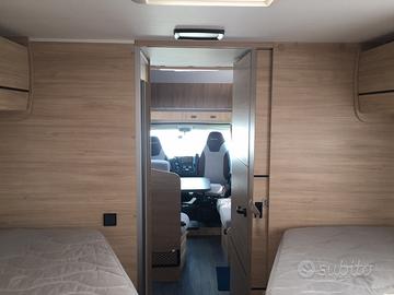 Stupendo mansardato ex noleggio omologato 5 posti con letti gemelli e solo 21.689 km.Letti gemelli in coda con possibilità di trasformazione in un grande matrimoniale con sottostante garage, toilette completamente separata con box doccia contrapposto, comoda cucina con frigorifero a colonna e dinette centrale. I sedili guida girevoli completano la zona vivibile offrendo il massimo dello spazio.