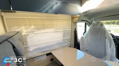 6000€ per Pack Accessori: Tendalino esterno, pannello solare 200W, luce esterna porta d'ingresso, zanzariera per la porta, oscurante cabina, estensioni letto dinette, cornici finestrini posteriori e Pack Connect: Autoradio DAB/Bluetooth con schermo tattile e comandi al volante e camera di retromarcia.