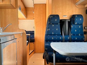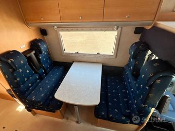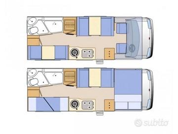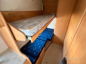Oltre al letto matrimoniale inmansarda, dispone di una doppia dinette, una convertibile in letto matrimonialee l'altra in un letto singolo, a cui si aggiunge un pratico letto pensile.