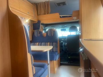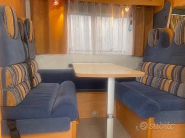 Aprile 2007 - Km 65000 - mt 5,90 Unico proprietario - UDINE Gomme 4 stagioni 6 posti viaggio 6 letto Riscaldamento gasolio Accessori extra: 2 pannelli solari Tendalino nuovo Antenna satellitare automatica Televisione con lettore dvd integrato Decoder tivusat Telecamera posteriore Terza batteria Inverter 350w Portabici 3 posti Sedile passeggero ruotabile lato dinette Doccia esterna Oblò fiamma Autoradio 4 altoparlanti Luce esterna Copertura parabrezza Zanziariera porta ingresso Cunei Fiamma