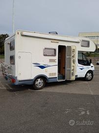 camper mansardato su FORD TRANSIT 2200 TDI KM 55.000 lungh, 5.89. omologato 6 posti viaggio e 6 posti letto, matrimoniale in mansarda, 2 singoli in coda e 2 da trasformazione dinette, bagno con doccia, 4 boccaporti di cui 1 con turbovent, garage ampliabile, frigo trivalente con ghiacciaia, cucina 3 fuochi gas + portabombola esterno da 10 kg. lavello, armadio, pensili, cassetto + sottolavello, riscaldamento a gasolio, boiler a gas, rilevatore fughe di gas e sensore temperatura, zanzariere e oscuranti su tutte le aperture + tendine, veranda esterna e doccetta esterna. serbatoio acqua 100 l. vari sistemi di illuminazione. portabici 3 posti. pannello solare. prezzo trattabile