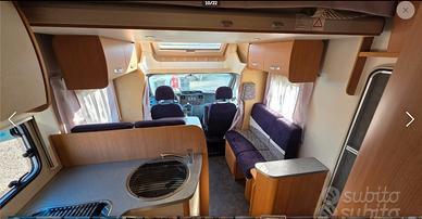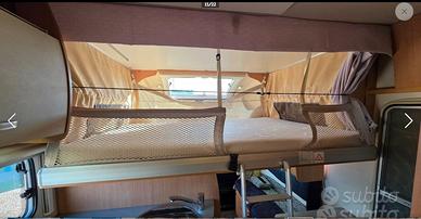 Vendo camper challenger genesis 52, mezzo agile e compatto ma con tutte le comodità di mezzi più ingombranti: frigo grande, cucina 3 fuochi, letti a castello e basculante enormi, luci a led. Appena eseguiti i seguenti lavori: tagliando completo senza badare a spese, gomme 4 stagioni nuove, batteria motore varta nuova, pulizia e sanificazione serbatoi, sostituzione oblo posteriore difettoso, sigillatura completa, tutto documentabile. Meccanica ford transit 2,2 da 140 cv, silenziosissimo e parsimonioso. Lunghezza 6,5 mt, sembra di guidare un auto. il mezzo ha inoltre: clima cabina, tendalino, portabici da 4, pannello solare, riscaldamento a gasolio usabile anche in marcia. Un vero gioiello! Per favore no perditempo, proferibile contatto telefonico
