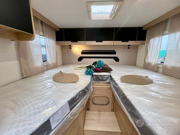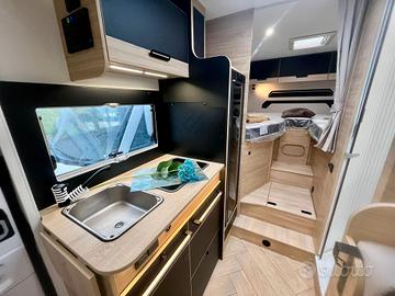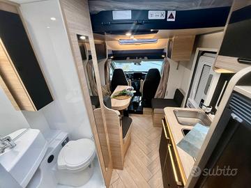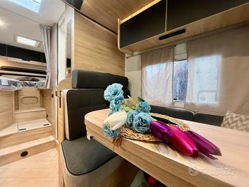 Dotazioni: paraurti verniciati, tecnibox, presa gas esterna, Ford pass, fari e tergicristalli con accensione automatica, fendinebbia, chiusura centralizzata, pre-equipaggiamento tv, riscaldamento diesel, illuminazione esterno, predisposizione pannello solare, pre-cablaggio della telecamera di retromarcia, isolamento gradino ingresso, climatizzatore automatico cabina, airbag conducente + passeggero, freno a mano elettrico, fix and go, sedili cabina girevoli regolabili in altezza con doppio braccio, retrovisori elettrici con sbrinatore, regolatore e limitatore di velocità, ESP, START&STOP, oblo panoramico apribile, tende di separazione cellula/cabina, presa USB/USB-C, presa acqua esterna, struttura IRP tetto pavimento pareti poliestere.