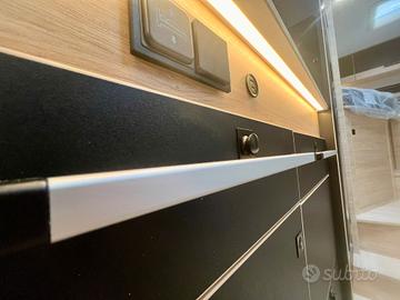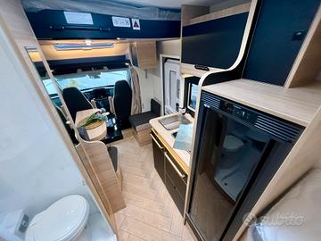 Semintegrale Challenger 287 Graphite Edition Lunghezza: 699 Motore: Ford Transit 2.0 165 CV Dotazioni: paraurti verniciati, tecnibox, presa gas esterna, Ford pass, fari e tergicristalli con accensione automatica, fendinebbia, chiusura centralizzata, pre-equipaggiamento tv, riscaldamento diesel, illuminazione esterno, predisposizione pannello solare, pre-cablaggio della telecamera di retromarcia, isolamento gradino ingresso, climatizzatore automatico cabina, airbag conducente + passeggero, freno a mano elettrico, fix and go, sedili cabina girevoli regolabili in altezza con doppio braccio, retrovisori elettrici con sbrinatore, regolatore e limitatore di velocità, ESP, START&STOP, oblo panoramico apribile, tende di separazione cellula/cabina, presa USB/USB-C, presa acqua esterna, struttura IRP tetto pavimento pareti poliestere. Pack coonnect (di serie): autoradio DAB/Bluetooth con schermo tattile e comandi al volante e camera di retromarcia Pack Safety Ford (di serie): allarme anticollisione, controllo superamento corsia, sensore pioggia e luminosità, sensori di pressione degli pneumatici, riconoscimento dei segnali di velocità Pack look Ford: cerchi in lega neri da 16'', letto basculante Pack accessori: tendalino, pannello solare 140, zanzariera porta, oscuranti plissettati, estensione letto gemello, Frigorifero a compressore Prezzo chiavi in mano € 81.290,00