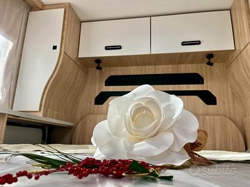 Motore: Fiat Ducato 2.2 140CV CAMBIO AUTOMATICO Lunghezza: 7,39 Dotazione: Pack Accessori: tendalino, pannello solare 140W, zanzariera porta, oscuranti cabina, letto basculante Pack Look FIAT: leva del cambio e volante effetto pelle, bocchette d'aria cromate, cerchi in lega neri da 16'' Cabina bianco, climatizzazione manuale di cabina, airbag conducente + passeggero, fix and go, sedili cabina girevoli regolabili in altezza con doppio bracciolo, fodere sedili cabina coordinate con i tessuti cellula, retrovisori elettrici con sbrinatore, regolatore e limitatore di velocità, ESP, Traction+, Hill descent control Eco pack: Stop&Start, alternatore intelligente, pompa carburante a gestione elettronica, Isolamento Gradino di ingresso, Tetto panoramico apribile, Oblò panoramico (o 2 lucernari), Tende di separazione cellula/cabina, finestre doppio vetro con combinato oscurante/zanzariera, tende, cerniere ammortizzate per armadio, presa USB/USB-C, struttura IRP, paraurti verniciato, pneumatici 4 stagioni, fendinebbia, chiusura centralizzata, predisposizione tv, riscaldamento diesel, illuminazione esterna, predisposizione pannello solare (MPPT), pre-cablaggio della telecamera di retromarcia, fissaggi isofix Pack Connect:Autoradio DAB/Bluetooth con schermo tattile doppio vetro con combinato oscurante/zanzariera Prezzo chiavi in mano: € 85.290,00