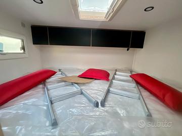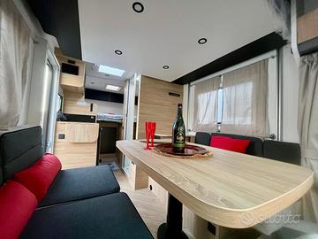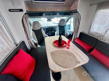 Dotazioni: grigiomatter, clima automatica cabina, airbag conducente / passeggero, freno a manoelettrico, fix and go, sedile cabina girevoli regolabile in altezza con doppiobraccio, fodere sedili cabina coordinate con tessuti cellula, retrovisorielettrici con sbrinatore, regolatore e limitatore di velocità, ESP, calandratrail, START & STOP, isolamento gradino, tetto panoramico, oblò panoramico,tende di separazione, tende dinette, presa USB/USB-C, presa esterna acqua,cerchi in lega 16'', presa gas esterna, fari e tergicristalli con accensioneautomatica, fendinebbia, pre-cablaggio TV, riscaldamento diesel, illuminazioneesterna, predisposizione pannello solare, pre-cablaggio retrocamera