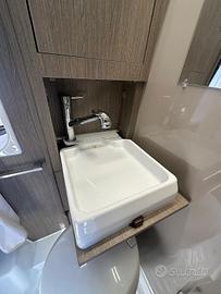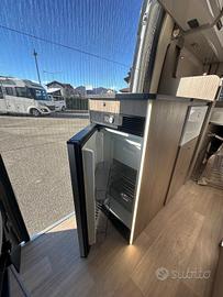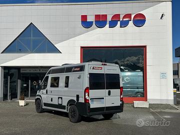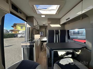 Fiat Ducato 2.2 MJ 140 CV Anno 2023 - Km 36.000 Posti omologati: 4 - Posti letto: 3 Lunghezza: 540 cm Larghezza: 205 cm Altezza: 260 cm Cerchi in lega 16', Comadi al volante, Clima cabina, Radio Doppiodin + Retrocamera, Veranda, Zanzariera portellone, gradino elettrico, Riscaldamento a gasolio Webasto, Frigo compressore, Scuri Remis, Maxi oblò panoramico, Kit 3° letto dinette, Pannello fotovoltaico, Fendinebbia, antifurto. PARI AL NUOVO!