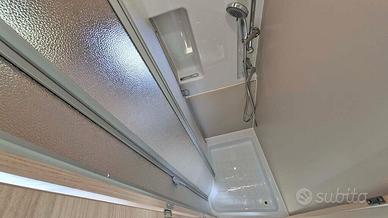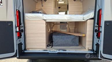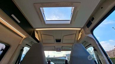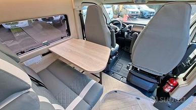 Questo van monta un motore Fiat Ducato Euro 6 da 140 cavalli, con trazione anteriore, cambio automatico a 8 marce e cerchi in lega da 16 pollici neri, che conferiscono al veicolo un aspetto sportivo e accattivante. La cabina è dotata di un autoradio 2Din con porta USB e schermo tattile, comandi al volante, telecamera di retromarcia, aria condizionata, per una guida sempre comoda e sicura. Inoltre, il volante in pelle e le bocchette dell'aria cromate aggiungono un tocco di eleganza e stile.