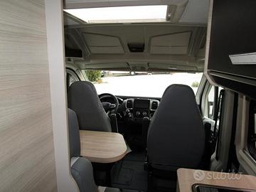 Dotato di climatizzazione in cabina, airbag conducente e passeggero, retrovisori elettrici con sbrinamento, sedili cabina girevoli regolabili in altezza con doppio bracciolo e tappezzeria come dinette, sistema di trazione evoluto Traction+, regolatore di velocità cruise control, volante e leva cambio in ecopelle, predisposizione autoradio con casse ed antenna DAB, paraurti anteriore verniciato, fendinebbia, serbatoio gasolio da 90 lt, telaio 35 quintali, cerchi in lega da 16", oblò panoramico Midi-Heki, gradino elettrico, prolunga tavolo dinette, illuminazione interna 100% a LED, varie prese USB, 12V e 220V. Il mezzo ha il riscaldamento a gasolio Webasto ed il frigorifero a compressore da 90 litri.