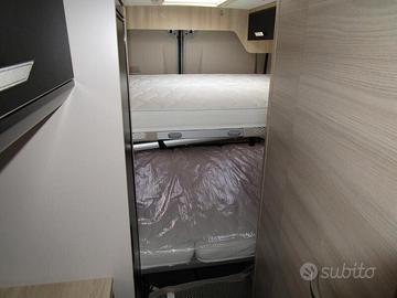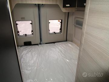 - PACK ACCESSORI che include gli oscuranti plissé in cabina, il pannello solare fotovoltaico, il tendalino, la luce esterna e la zanzariera della porta scorrevole ed il kit 5° letto per la dinette.