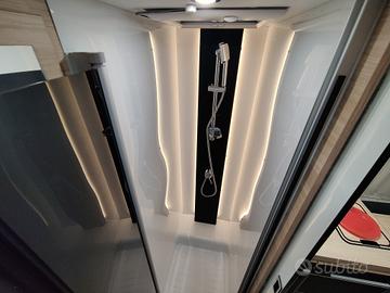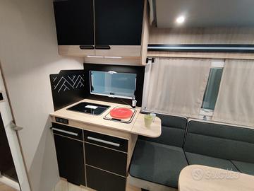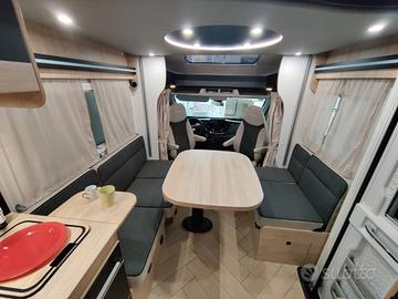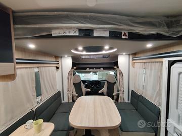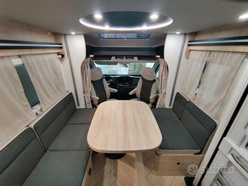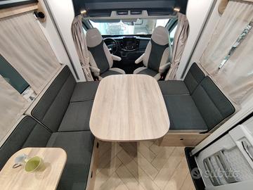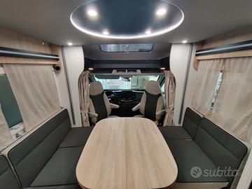 MARCA: CHAUSSON MODELLO: 650 TITANIUM LINE MECCANICA: FORD 2.0 165CV 121KW CAMBIO AUTOMATICO TIPOLOGIA: SEMINTEGRALE CON LETTO BASCULANTE E SERVIZI IN CODA POSTI LETTO: 4 POSTI OMOLOGATI: 4 LUNGHEZZA: 6.390mm LARGHEZZA: 2.350mm ALTEZZA: 2.920mm MASSA IN ORDINE DI MARCIA: 2896kg OPTIONAL MONTATI SUL VEICOLO: - MOTORIZZAZIONE 165CV (+1kg); - CAMBIO AUTOMATICO A 8 RAPPORTI (+55kg); - PACK CONNECT (Autoradio DAB/Bluetooth con schermo tattile e comandi al volante e camera di retromarcia) (+4kg); - PACK ACCESSORI (Tendalino esterno, Pannello Solare 140W, zanzariera per la porta, oscuranti cabina plissettati) (+55kg); - PACK LOOK FORD (Cerchi in lega neri da 16'') (+5kg); OPTIONAL DI SERIE SUL VEICOLO: - CABINA BIANCO; - CLIMATIZZAZIONE AUTOMATICO CABINA; - AIRBAG CONDUCENTE + PASSEGGERO; - FRENO A MANO ELETTRICO; - FIX AND GO; - SEDILI CABINA GIREVOLI REGOLABILI IN ALTEZZA CON DOPPIO BRACCIOLO; - FODERE SEDILI CABINA COORDINATE CON I TESSUTI CELLULA; - RETROVISORI ELETTRICI CON SBRINATORE; - REGOLATORE E LIMITATORE DI VELOCITÀ; - ESP; - START & STOP; - ISOLAMENTO GRADINO DI INGRESSO; - PORTA DELLA CELLULA CL (60 CM) CON FINESTRA; - TETTO PANORAMICO APRIBILE; - OBLÒ PANORAMICO (O 2 LUCERNARI); - TENDE DI SEPARAZIONE CELLULA/CABINA; - FINESTRE DOPPIO VETRO CON COMBINATO OSCURANTE/ZANZARIERA TENDE; - CERNIERE AMMORTIZZATE PER ARMADI; - PRESA USB/USB-C; - PRESA ACQUA ESTERNA; - STRUTTURA IRP: TETTO/PAVIMENTO/PARETI POLIESTERE; - TECHNIBOX; - PARAURTI VERNICIATO; - CERCHI IN ACCIAIO 16" CON COPRICERCHI GRIGIO; - SPECCHIO INGRESSO RETRO-ILLUMINATO; - SPOGLIATOIO CON CASSETTI; - PRESA GAS ESTERNA; - FORD PASS; - FARI E TERGICRISTALLI CON ACCENSIONE AUTOMATICA; - FENDINEBBIA; - PORTA D'ENTRATA "LUSSO", CHIUSURA CENTRALIZZATA CABINA/CELLULA; - MATERASSO CONFORT LETTO PRINCIPALE; - PRE-EQUIPAGGIAMENTO TV; - RISCALDAMENTO CHE UTILIZZA IL CARBURANTE DEL VEICOLO UTILIZZABILE IN MARCIA; - ILLUMINAZIONE ESTERNA SPORTELLO DI INGRESSO AR