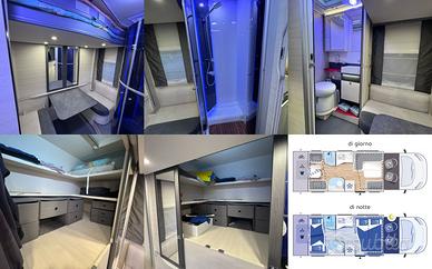 Perfetto per la famiglia con ampia zona giorno in doppia dinette e letti sempre pronti in un minuto.