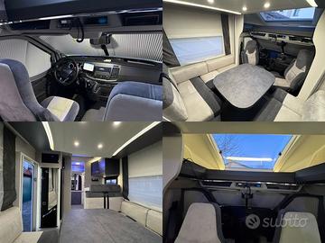 Rivestimento supplementare di tutte le dinette e dei sedili guida, con microfibra di alcantara idrorepellente e antimacchia.