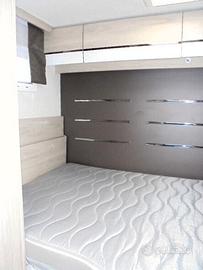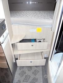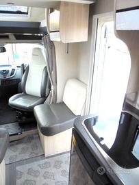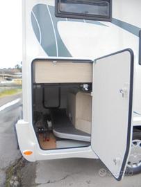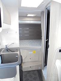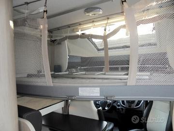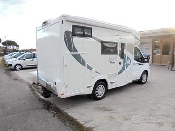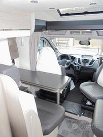 Semintegrale compatto 4 posti con garage e letto basculante, lunghezza 6 mt Disposizione: Dinette avanzata con divanetto laterale e sedili girevoli, cucina lineare, frigo incassato, bagno a modulo unico con separazione doccia, letto matrimoniale posteriore trasversale ad altezza variabile. Meccanica: Ford 2.0 130cv con climatizzatore. Accessori: Tendalino, pannello solare, allarme, retrocamera.