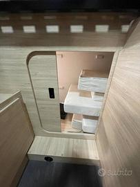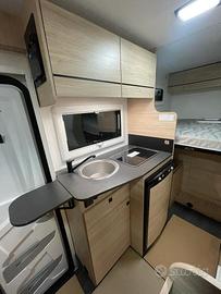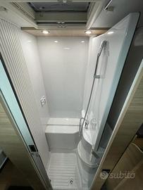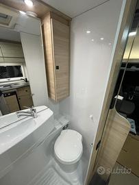 Favoloso semintegrale con letto matrimoniale in coda trasversale, garage, bagno con parete traslabile, ampia dinette il tutto in mt 5,99.