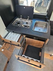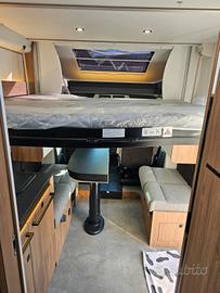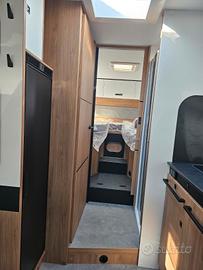 Primo sul mercato italiano, laSaCi Camper vi presenta ufficialmente la Sweet Line su questo bellissimo 797letti gemellati: piantina con interni deluxe e rifiniture eleganti, unfull optional con cambio automatico dotato delle migliori comodità, dal basculante centrale ai due letti gemelli in coda (con possibilità di trasformarlo in unsecondo matrimoniale trasversale), frigorifero alto a compressore contro letemperature più alte e bagno con doccia separata. Su motorizzazione Ford Transit -2.0cc - 165cv - Cambio automatico - Diesel Euro6D - omologato 4 postiviaggio/letto. Dotazioni di serie: Vernice grigio Artense Clima cabina Volante in pelle Sedili girevoli con doppiobracciolo Airbag conducente e passeggero Cruise control + limitatore , ESP+ Traction+ + Hill Descent , ABS + Pneumatici 4 stagioni, Fendinebbia Specchietti elettrici riscaldati Tetto panoramico apribile Porta ingresso con finestra echiusura centralizzata Finestre doppio vetro conzanzariera Oblò cucina, notte e bagno Costruzione IRP (isolamentoavanzato) Isolamento grado 3 Tecnibox (vano tecnico) Dinette face-to-face Sedili viaggio fronte strada Letto centrale regolabile inaltezza Materasso premium (Made in France) Armadio e specchio retroilluminato Porta separazione camera Piano cottura 2 fuochi Lavello separato Frigo a compressore Paraspruzzi WC a cassetta Bagno passante con doppiaseparazione Doccia con doppio scarico Pareti impermeabili Batteria litio 100 Ah Luci LED (interne + esterne) Prese elettriche + USB / USB-C Predisposizione TV e clima Pannello solare 100W Dotazioni optionals a bordo: Cambio automatico 8 rapporti Ford Pack accessori: tendalino,pannello solare 140w, zanzariera porta cellula, oscuranti plissettati cabina,estensione letti gemelli Pack connect: Autoradio 2 DIN con comandial volante, retrocamera e camera anteriore. Pack Safety Ford: Allarmeanti-collisione, controllo superamento corsia, sensore pioggia e luminosit