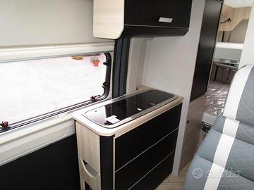 Dotato di climatizzazione in cabina, airbag conducente e passeggero, retrovisori elettrici con sbrinamento, sedili cabina girevoli regolabili in altezza con doppio bracciolo e tappezzeria come dinette, sistema di trazione evoluto Traction+, regolatore di velocità cruise control, predisposizione autoradio con casse ed antenna DAB, paraurti verniciato, telaio 35 quintali, fendinebbia, serbatoio gasolio da 90 lt, cerchi in lega da 16", oblò panoramico Midi-Heki, gradino elettrico, prolunga tavolo dinette, illuminazione interna 100% a LED, varie prese USB, 12V e 220V. Il mezzo ha il riscaldamento a gasolio Webasto ed il frigorifero a compressore da 90 litri.