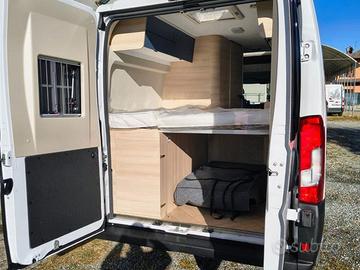 Questo furgone arredato è ideale per andare dove vuoi, quando vuoi, in tutta discrezione, compreso nella vita di tutti i giorni: per i tuoi viaggi c'è tutto: angolo cucina, salotto, bagno e letto da 2 posti. 6 metri di piacere per tutti i giorni, il letto posteriore si rialza per guadagnare spazio e il salotto si trasforma in sedile, provvisto di 2 cinture di sicurezza per viaggiare in 4.