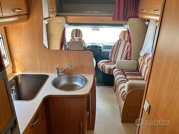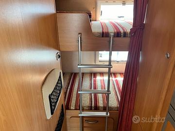 Compattofuori, spazioso dentro, con una lunghezza di soli 6,60 metri, è facile damanovrare e versatile, pur garantendo un'eccellente abitabilità interna. L'arealiving è progettata per il massimo relax, grazie alla dinette accogliente, aisedili anteriori girevoli e al divanetto laterale.Comfort peril riposo di tutti, la zona notte include due letti a castello posteriori e unletto matrimoniale in mansarda, perfetti per garantire sonni tranquilli a tuttala famiglia.La cucinaangolare è ampia e ben organizzata, dotata di 3 fuochi, lavandino e frigoriferoda 150 litri, per preparare ogni pasto come a casa.