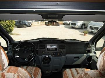 Bel camper mansardato Chausson Welcome 28 su Ford Transit 2.4 TDCi 140cv del 2008 con 100.900 Km e la trazione posteriore con le ruote gemellate.