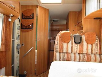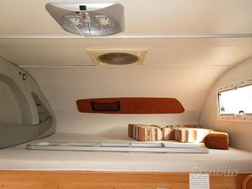 5 posti omologati e 6 posti letto con matrimoniale in mansarda, semi-dinette con sedili cabina girevoli, trasformabile in matrimoniale e letto matrimoniale posteriore sopra al maxi garage.