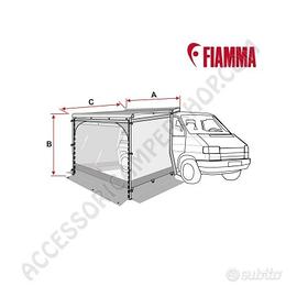Chiusura privacy ROOM VAN Fiamma per tendalino F40Van 270 con pannello frontale trasparente e laterali ciechi,la stanza tuttofare per il tendalino F40VAN, modello 2023, dall'anno 2024 è stata sostituita con modello PREMIUM 270 (Cod. A0008870-01-).
