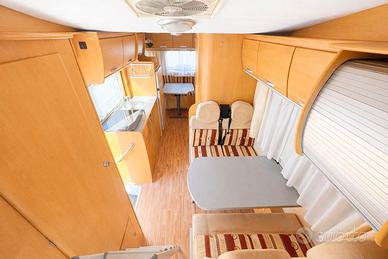 ELLIOT 50 - ANNO 2007 - PRONTO VIAGGIO! Proponiamo in vendita splendido camper Elliot 50, ideale per famiglie o per chi cerca comfort e affidabilità in viaggio. Mezzo ben tenuto, spazioso e completo di numerosi accessori. Caratteristiche principali * Anno: 2007 * Motore: 2.4 * Km: 113.146 * Lunghezza: 7,24 m * Larghezza: 2,30 m * Posti viaggio: 5 * Posti letto: 6 [?] Interni e comfort Ambienti accoglienti e funzionali, con ampia dinette posteriore trasformabile: Abbassando il tavolo si ottiene facilmente un comodo letto matrimoniale Perfetto per garantire spazio e praticità durante i viaggi. [?] Accessori inclusi * Aria condizionata in cabina * Pannello solare * Tendalino esterno * Doppia batteria servizi * Turbovent * TV * Impianto stereo con casse in cellula * Cruise control * Vetri elettrici * Fari fendinebbia * Braccioli sedili guida * Sedili girevoli [?] Garanzia e condizioni [?] 12 mesi di garanzia su motore e cellula [?] Consegnato con siliconature nuove [?] Mezzo pronto all'uso, senza lavori da fare Servizi * Accettiamo permute Prezzo: €24.700