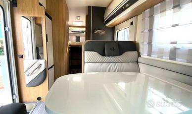 Accessori di serie: quinto posto omologato, tetto in vetroresina antigrandine, volante e pomello cambio in pelle, climatizzatore manuale cabina, airbag guidatore e passeggero, cruise control con limitatore di velocità, sedili cabina girevoli, fari fendinebbia, vano per due bombole, piatto doccia con doppio scarico, gradino di entrata integrato e isolato, gavone garage riscaldato, oblò posteriore, oblò dinette, oscurante cabina plissettato.