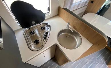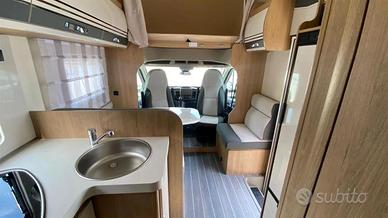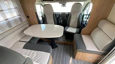 Accessori di serie: quinto posto omologato, tetto in vetroresina antigrandine, volante e pomello cambio in pelle, climatizzatore manuale cabina, airbag guidatore e passeggero, cruise control con limitatore di velocità, sedili cabina girevoli, fari fendinebbia, vano per due bombole, piatto doccia con doppio scarico, gradino di entrata integrato e isolato, gavone garage riscaldato, oblò posteriore, oblò dinette, oscurante cabina plissettato.