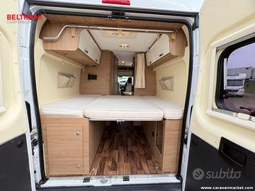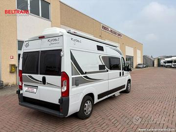 CI Kyros 2 Experience del 2017, camper van maneggevole da 5,99 metri su meccanica Fiat Ducato 2.3 Multijet da 130 CV, ideale per chi cerca maneggevolezza, comodità di viaggio e spazi interni ben organizzati in un furgonato sotto i 6 metri.La disposizione interna è tra le più richieste nel segmento van: dinette anteriore con sedili cabina girevoli, cucina laterale attrezzata, bagno con doccia integrata e pratico lavabo scorrevole, oltre a un comodo letto matrimoniale trasversale in coda da circa 190 x 144 cm.Omologato per 4 posti viaggio, questo CI Kyros 2 Prestige offre una soluzione versatile per la coppia che desidera partire in totale libertà, con il vantaggio di una carrozzeria compatta capiente 2,05 metri e alta 2,61 metri.