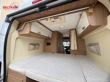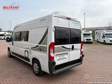 CI Kyros 2 Experience del 2017, camper van maneggevole da 5,99 metri su meccanica Fiat Ducato 2.3 Multijet da 130 CV, ideale per chi cerca maneggevolezza, comodità di viaggio e spazi interni ben organizzati in un furgonato sotto i 6 metri.La disposizione interna è tra le più richieste nel segmento van: dinette anteriore con sedili cabina girevoli, cucina laterale attrezzata, bagno con doccia integrata e pratico lavabo scorrevole, oltre a un comodo letto matrimoniale trasversale in coda da circa 190 x 144 cm.Omologato per 4 posti viaggio, questo CI Kyros 2 Prestige offre una soluzione versatile per la coppia che desidera partire in totale libertà, con il vantaggio di una carrozzeria compatta capiente 2,05 metri e alta 2,61 metri.
